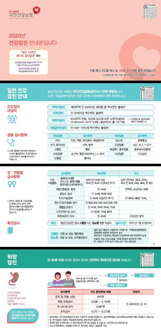 만 20세 이상 대한민국 국민은 건강보험공단에서 지원하는 건강검진을 받을 수 있다.