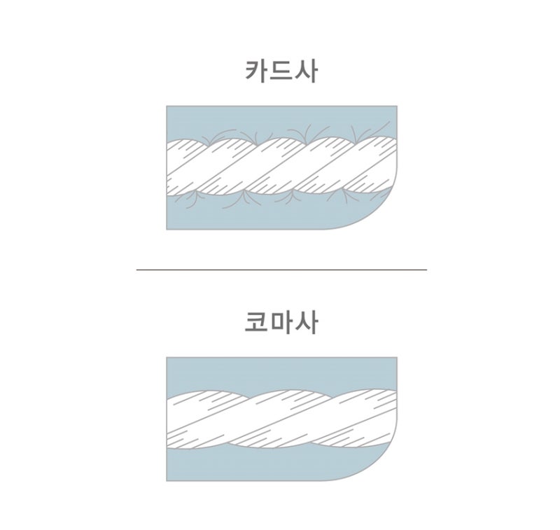 코마사는 쉽게 말해 카드사(絲)2를 빗질해서(코밍) 미세먼지나 이물질을 제거하는 코마(combed) 공정을 마친 면사(綿絲)이다. 먼지를 최소화하기 위해 실을 한번 더 정제한 것이다. 그렇기 때문에 카드사(絲)에 비해 먼지가 덜 생기는 것이다. 또한, 섬유길이가 길고 잘 끊어지지 않아 내구성이 뛰어나다